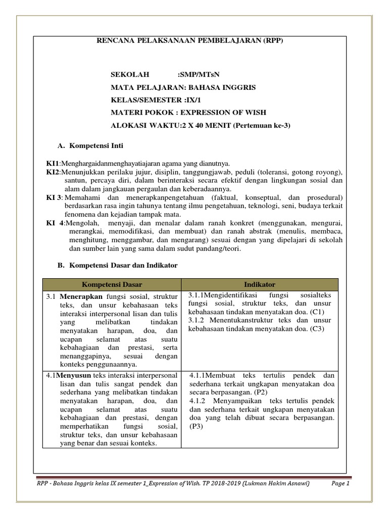 Rpp K13 1 Lembar Bahasa Inggris Kelas 9 Revisi 2020 Lengkap Dengan 3 Komponen Wajib Guru Baik from 1.bp.blogspot.com We did not find results for: Check spelling or type a new query. Maybe you would like to learn more about one of these? Rpp bahasa inggris kelas 10 semester 1 kurikulum 2013.