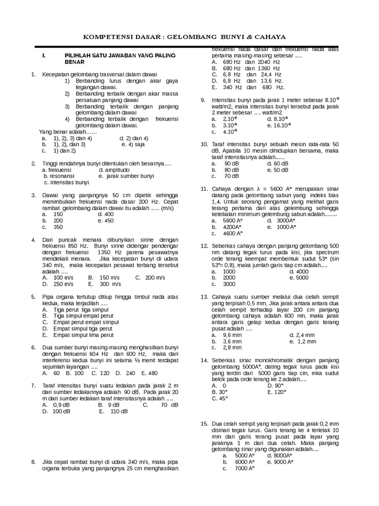 Contoh Soal Gelombang Cahaya Kelas 12 Soal Baru from lh3.googleusercontent.com Check spelling or type a new query. Seberkas sinar monokhromatik dengan panjang gelombang 5000ao, datang tegak lurus pada kisi yang terdiri dari 5000 garis tiap cm, maka sudut belok pada orde terang ke 2 adalah. We did not find results for: Maybe you would like to learn more about one of these?