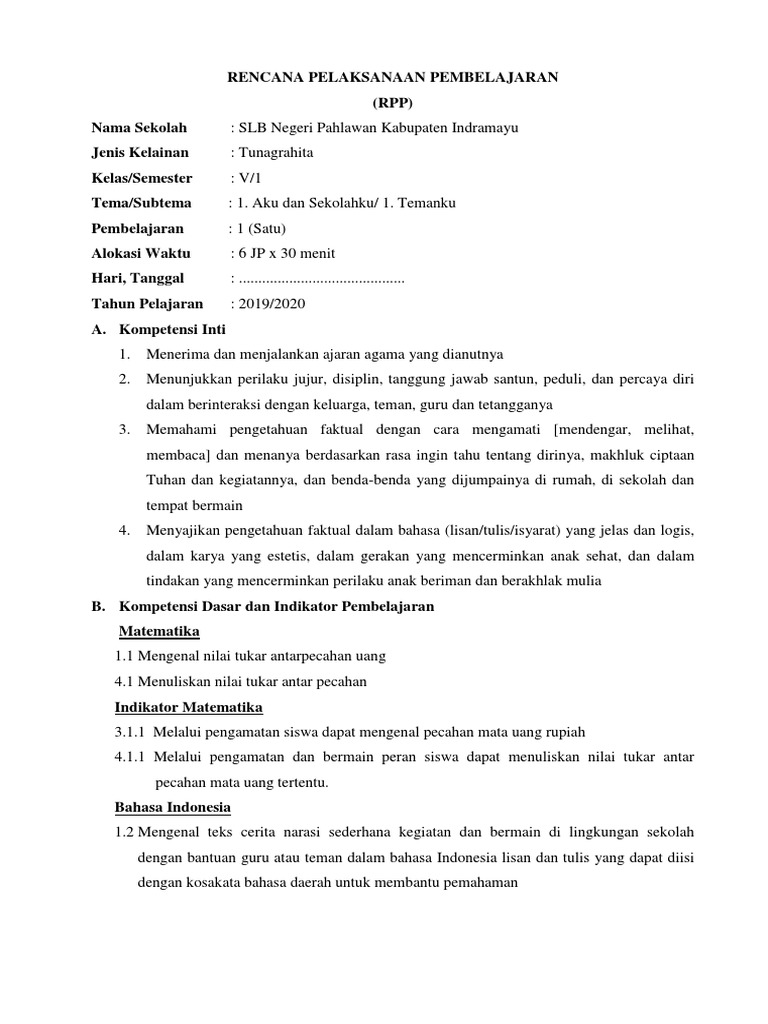 Rpp kelas iv slb tuna rungu rencana pelaksanaan pembelajaran (rpp) sekolah :